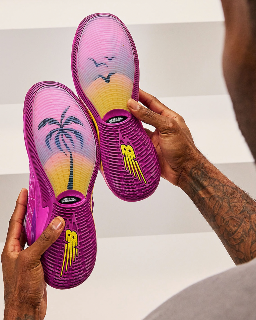 The Kawhi 4 “Purple Punch” features a vibrant mix of Purple Punch and Signal Pink shades, highlighted with subtle yellow accents. The upper is crafted from tonal mesh, providing excellent breathability during intense play. A sleek TPU heel cage adds structure and a modern touch. However, the outsole steals the show with palm tree and seagull graphics, delivering tropical vibes. This detail nods to Los Angeles or Kawhi’s calm personality.